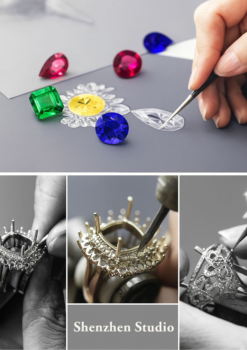 From our family studio in Hangzhou, we united generations of design expertise and gemstone artistry, blending time-honored techniques with modern precision. In 2005, our studio relocated to Shenzhen’s Jewelry City, one of the world’s leading centers for fine jewelry craftsmanship. There, our team continued to refine our artistry and expand our reach, offering bespoke creations to clients across the globe.